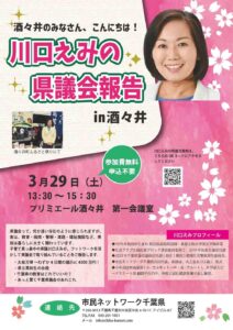0329_houkokukai 2025.03.21 さくら・市民ネットワーク 開所時間:月〜金 10:00-17:00(平日)TEL:043-462-0618FAX:043-489-0797E-mail:news[at]sakura-siminnet.com〒285-0837 千葉県佐倉市王子台3丁目5-13