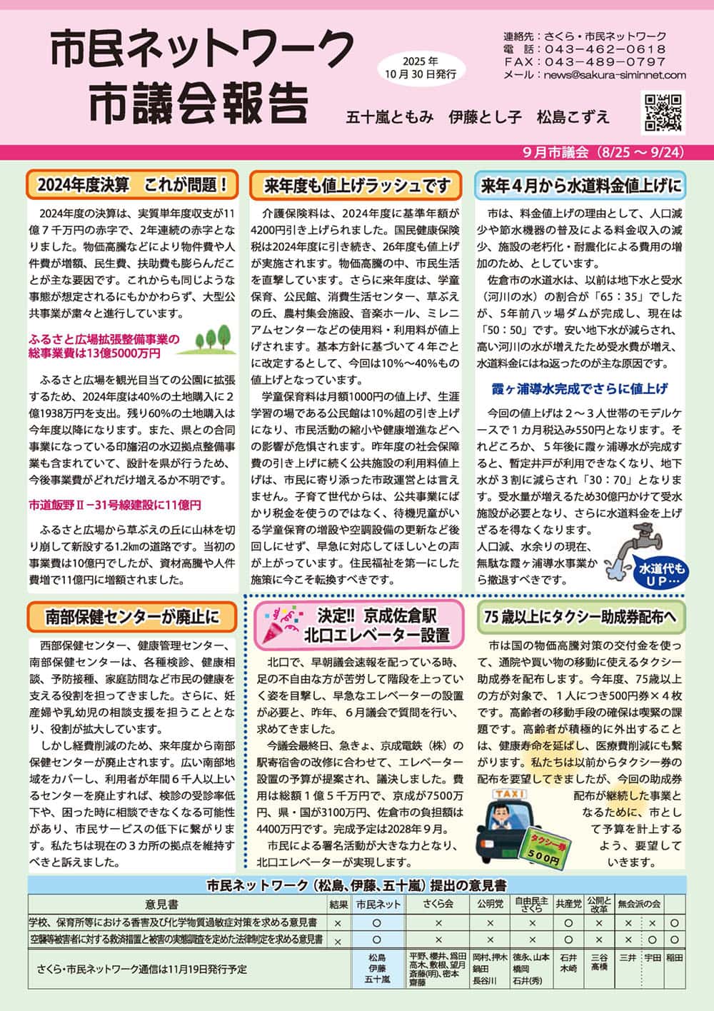 県議会報告・市議会報告を掲載いたしました。 最新情報 2025.10.31 2025年10月県議会報告・市議会報告を掲載いたしました。どうぞご覧ください。 佐倉市議会報告これまでに発行した佐倉市議会報告の一覧です。画像をクリックすると大きく表示されます。最新号画像をクリックするとPDFが開きます県議会報告(PDF)ダウンロード2025年7月2025年4月2024年10月2024年7月2024年4月発行202... 県政リポートこれまでに発行した千葉県議会報告の一覧です。画像をクリックすると大きく表示されます。最新号画像をクリックするとPDFが開きます県議会報告(PDF)ダウンロード2025年10月発行2025年7月発行2025年4月発行2025年1月発行バックナ...
